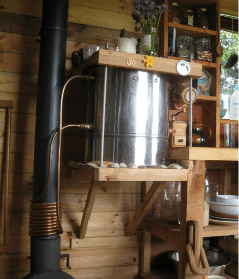 Improvizirani bojler za toplu vodu, spojen na peć na drva