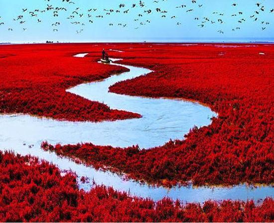 Crvena plaža je duga 26 km i skoro kilometar široka. Dobila je ime po morskoj travi koja se u jesen pretvara u spektakularni crveni krajolik.
