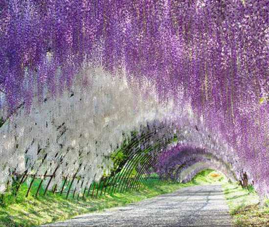 Kawachi Fuju vrtovi imaju preko 20 vrsta Wisteria cvjetova, a šetnja ovim tumelima cvijeća predstavlja nevjerojatan doživljaj.