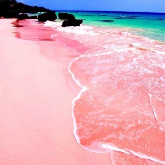 Plaža roze boje na Bahamima je nastala od usitnjenih ostataka koralja.