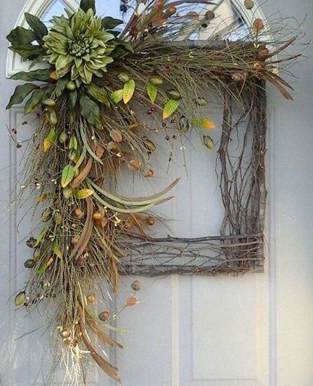 Okvir od grančica s ukrasima od zelenila kao dekoracija