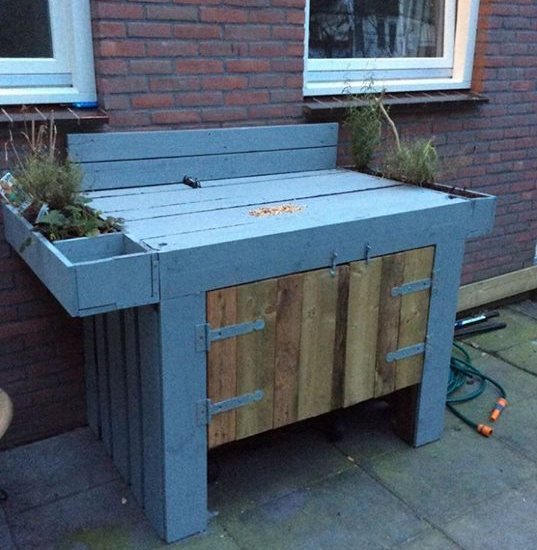 Vanjski radni stol od paleta za presađivanje i rad oko kuće