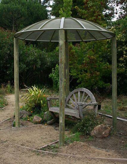 Sjenica od drveta i satelitskog tanjura kao krova