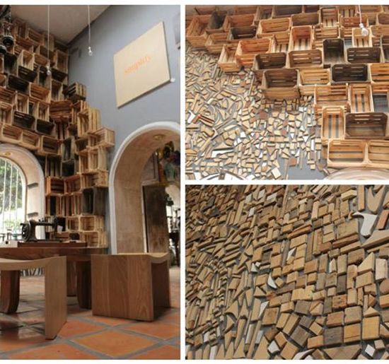 Ukrašavanje zida otpadnim drvenim materijalom i gajbama