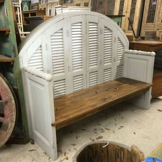 Klupa od drvenih prozorskih grilja