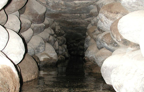 Niz kanala dovodio je vodu, zarobljenu pod zemljom, do područja gdje je bila potrebna, a višak se pohranjivao u površinskim rezervoarima. Kako bi se voda kretala kroz kanale, na površini su oformili rupe u obliku spirala što je omogućavalo da vjetar dopire u kanale što je pak prisiljavalo vodu da teče kroz sustav.