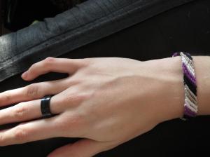 Boje zastave imaju svoje značenje: crna označava aseksualnost, siva demiseksualnost, bijela ne-aseksualne partnere i saveznike, a ljubičasta zajednicu. Također, neke su aseksualne osobe odabrale nositi crni prsten na srednjem prstu desne ruke kao vidljiv znak pripadnosti ovom spolnom određenju.